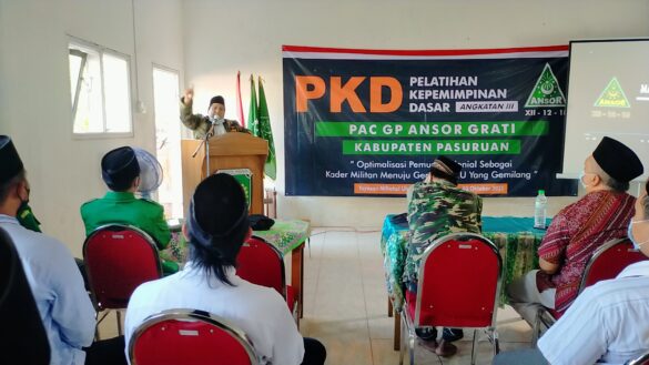 Grati _ Pelatihan Kepemimpinan Dasar (PKD) ke 3 Pimpinan Anak Cabang GP Ansor Grati resmi di buka. Jumat, 1 Oktober 2021 bertepatan dengan hari kesaktian Pancasila acara pelatihan Ansor tersebut resmi dilaksanakan di Yayasan Miftahul Ulum Al Khoiriyah Tegalan Desa Kalipang Grati. Sebanyak 59 Peserta…